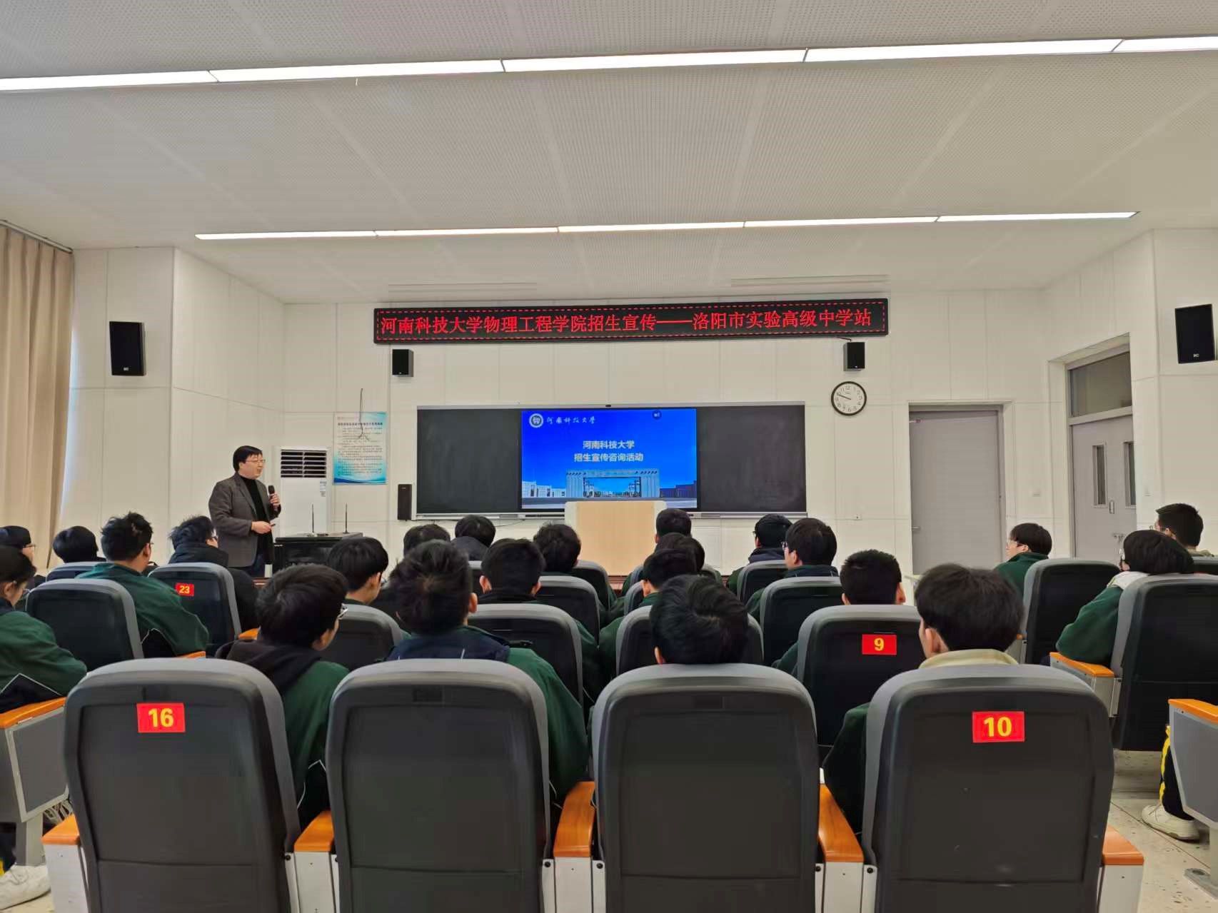 2025年12月2日上午,物理工程学院副院长王晓飞带队到洛阳市实验高级中学开展招生宣传。洛阳市实验高级中学王金奎主任及50余名高三师生参与活动。